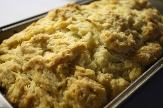 Oh. Ma. Gah. I saw this recipe and it appeared so easy, I had to give it a try. This is another quick-bread, something you can throw together in literally, one minute. This bread is delicious eaten on it’s own with some butter….or butter and cheese…peanut butter…but I think it would be great served alongside a soup, stew or chili. I think I’ll try adding some cheddar into the flour mixture next time, before adding the beer. EASY. GOOD. TRY IT. It comes from this amazing cookbook – one of my all-time favourites: The Pastry Queen by Rebecca Rather. You can find it on amazon.