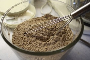 In separate bowl, whisk together first 6  ingredients – (flour through to salt). Set aside.