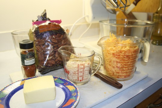 Using an electric mixer, beat the butter and cheeses on medium speed until combined, about 1 minute. Add the flour, salt and cayenne pepper and beat on low speed until combined. Stir in the pecans. Divide dough in half. Shape each half into a roll about 2 inches in diameter (or make it square like I did for square cookies) and 8-10 inches long. Wrap in plastic wrap and chill for at least 4 hours or overnight. (Dough can be made up to 2 weeks in advance, wrap and refrigerate until ready to use. Or wrap and freeze for 3 weeks).