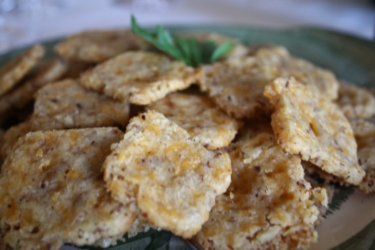 Preheat oven to 350F. Line baking sheets with parchment or silpats. Unwrap dough and slice into 1/8 inch slices. Place on baking sheet and bake until the cookies are lightly browned around the edges and crisp, about 10 minutes. *Important* Keep remaining dough cold while cookies are baking. Let baking sheets cool in between batches or cookies tend to spread out and lose their shape. Enjoy with a glass of wine or a cold glass of beer.