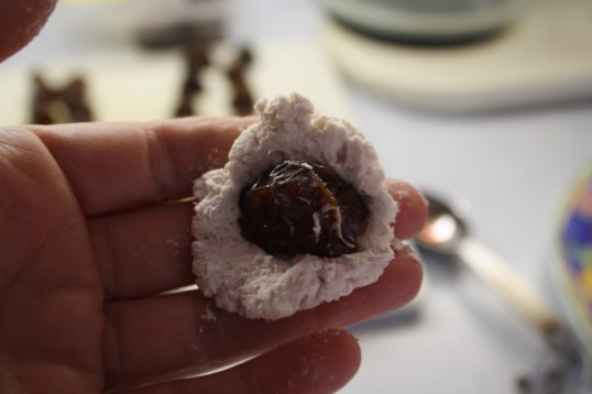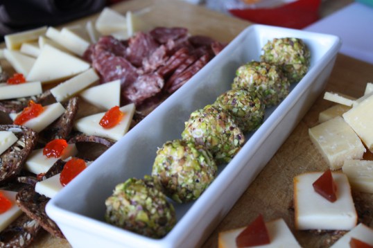 I’m posting a few of these great appetizer recipes since I recently catered a cocktail party and thought that you, out there in the world, might enjoy having these recipes on hand. These little numbers take a bit of time and are messy to construct, but the benefit is that they are relatively simple and you can make them 2 days ahead — just wrap and refrigerate and you’re good to go. Don’t make these too big, they are rich, so 2 bites should suffice. Everyone at the party I catered commented on these cheese truffles – they look really nice, and they cover so many elements – sweet, tart, salty, savory. You can’t go wrong. They would make a nice starter to an Indian themed get-together too. If you bring these to a party, you will get lots of ooohs and ahhhs. 😉