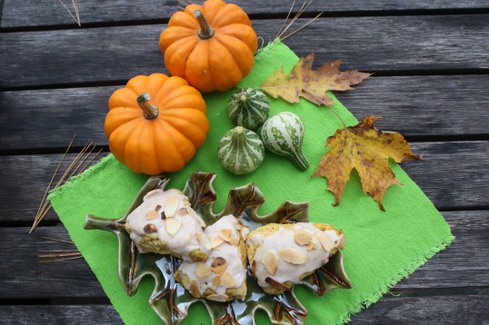 Oh, ma gah. I had some leftover canned pumpkin and wanted to make some pumpkin pie flavoured scones.  I was thinking about the pumpkin spiced latte at Starbucks.  I also made them ‘mini’ instead of huge.  They turned out tender and delicious and actually too good– I’ll be giving them away to avoid eating any more. (although I’ve eaten another one while writing this post – awesome with a cup of tea).