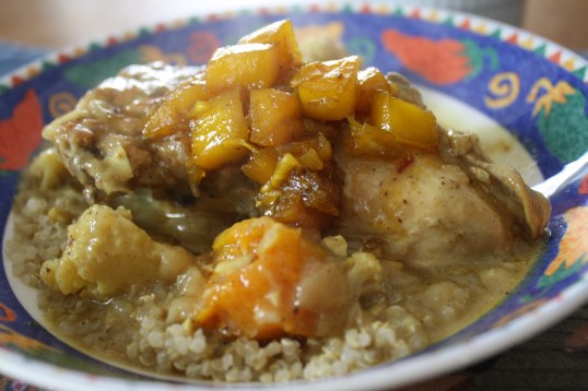 Serve over rice or quinoa.  Serve alongside mango chutney and fresh coriander.  Enjoy.