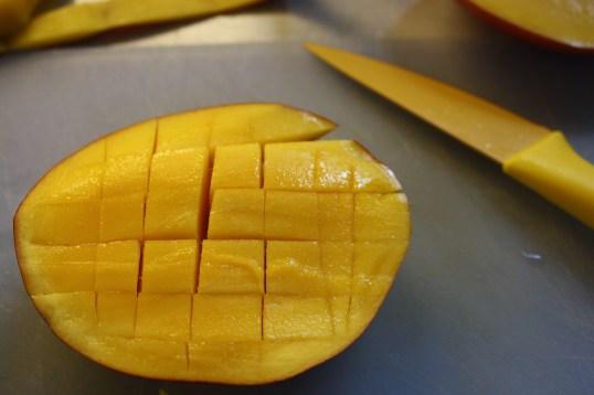 Prepare mango and dice into small cubes. Place the mango and all ingredients in a microwave safe dish. Stir, uncovered for 4-7 minutes.