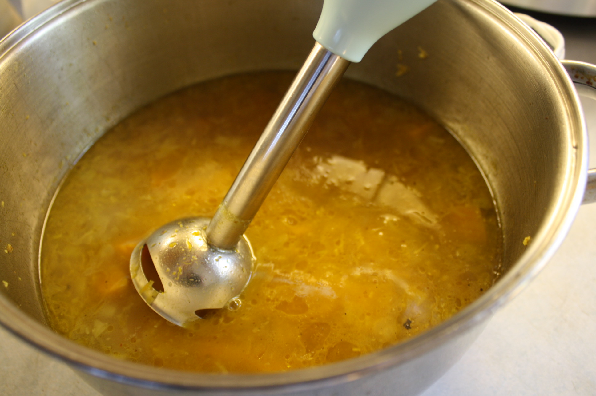 IMG_9275 Published January 6, 2012 at 1936 × 1288 in Butternut Squash and Apple Soup ← Previous Next → When squash is tender, puree soup with a handheld blender Post a comment or leave a trackback: Trackback URL.