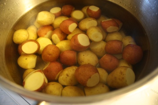 3 lbs baby white and red potatoes, cleaned and trimmed