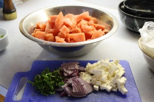 This is a great recipe for this time of year–bbq season– but also very good in the oven – and you will want to make this all year long. It’s got great concentrated flavour, and all you have to do is put together a super-easy, yogurt-based marinade, score your chicken, let it marinate and then bbq or bake it. The yogurt base tenderizes your chicken and the Middle Eastern spices make it aromatic and exotic tasting. Make sure your spices are fresh – it makes all the difference. You will be making this again and again, so you might as well get some fresh spices. I like to serve some cucumber raita alongside. (recipe below). You can use any type of chicken pieces you like. I usually use bone-in chicken breast, skinned and cut in two. You can marinate a big batch of chicken and put half in the freezer — it’s perfect for that. This recipe makes enough marinade for about 5-6 pounds (3 kg) of chicken. It will be a family favourite. Great the next day for lunch on a salad or with rice. TRY!